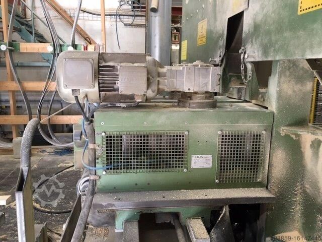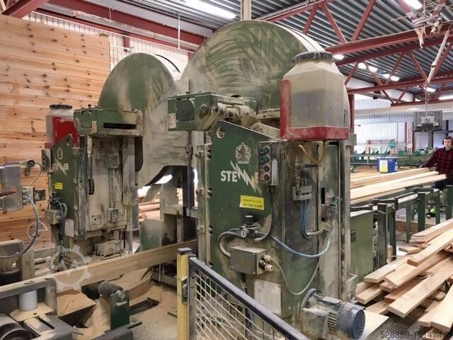 Двойная ленточная пила Stenner VH105 с двумя подвижными пильными блоками, позволяющими разместить один из них за системой подачи для резки одной пилой или подачи древесины через пилу без распиливания, и то и другое без снятия пильного полотна.