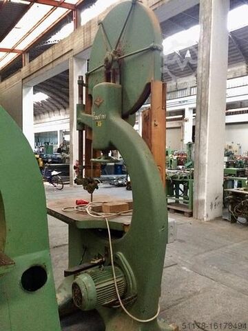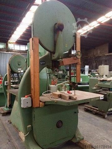 Чугунная ленточная пила марки Primultini с маховиком 100 см и наклонной скамьей, максимальный полезный проход досок 90 см. мощность двигателя 10 л.с. Используется.