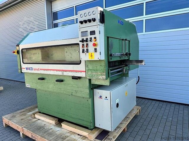 Многопильная дисковая пила Waco Lamell 90 для распиловки, обрезки, продольной распиловки или выборки пазов в досках с новой подающей цепью.