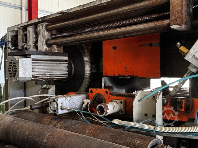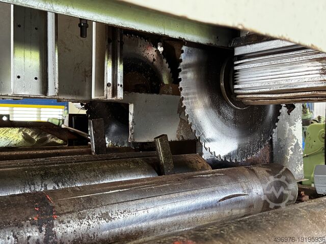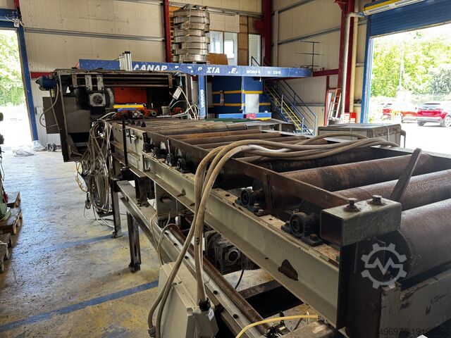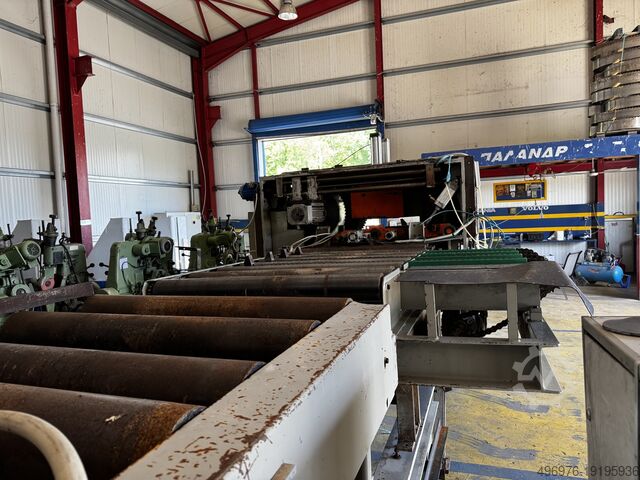 - 5-метровый моторизованный валок с 4 экструзионными узлами, а также двойными автоматическими центрирующими рычагами для удержания детали, поступающей на несколько лезвий
