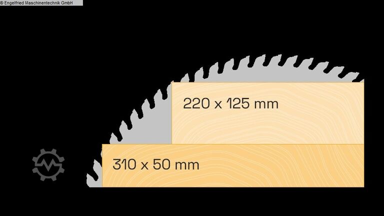 Поперечное сечение пилы макс. мм. 220x125, 260x100, 285x80, 310x50