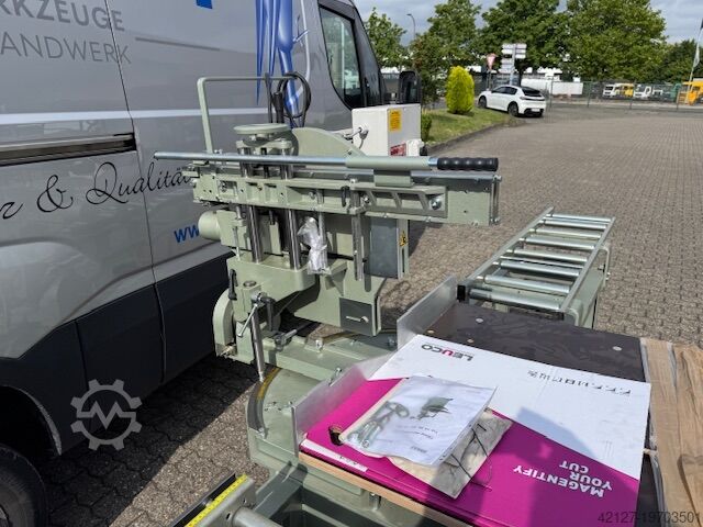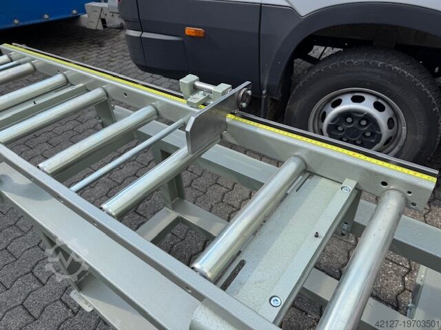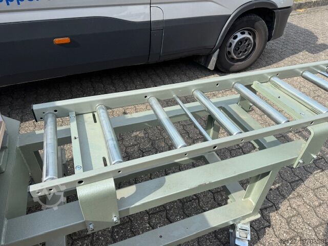 Станок установлен на мобильном основании с роликовыми конвейерами длиной 1,5 м слева и справа