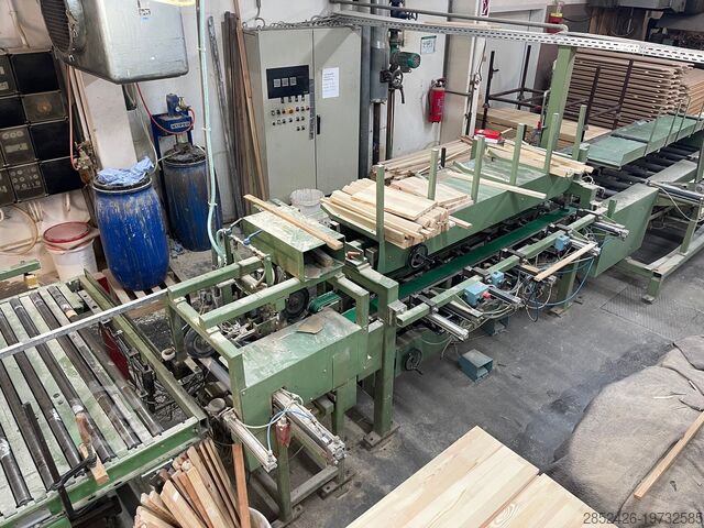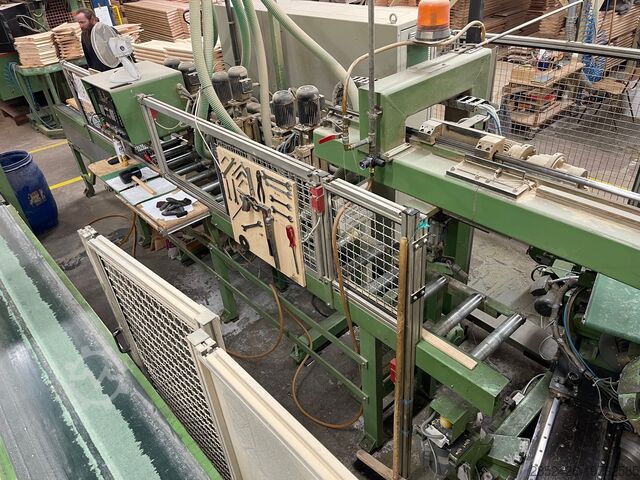 Предлагается на продажу полностью автоматическая двухсторонняя линия для раскроя гробов с интегрированным автоматом подачи реек для обработки нижних, фасонных и крышечных реек. Установка оснащена клеевой станцией для автоматического нанесения клея на рейки.