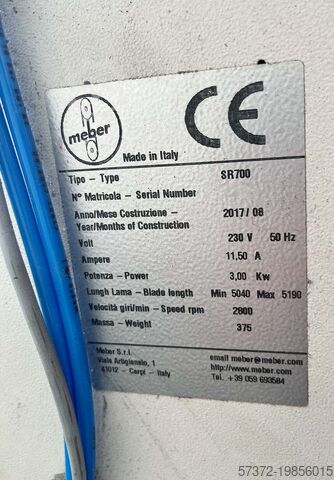 Диаметр маховиков: 700 мм, размеры рабочего стола: 694x1010 мм, режущая способность: 430x680 мм, ширина маховика: 40 мм, скорость ленточного полотна: 2800/мин, скорость маховика: 782/мин, длина ленточной пилы: 5040-5190 мм, мощность двигателя: 4 л.с., подключаемая мощность: 3 кВт, уровень шума: 82 дБ(A), собственный вес: 375 кг. Возможен осмотр на месте.