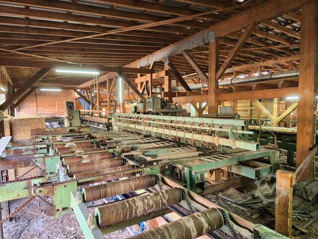 Для полностью автоматической обрезки кромок досок, измерения с помощью пальчиковых щупов, удаления обрезных досок через роликовый конвейер с подачей для сортировки по длине