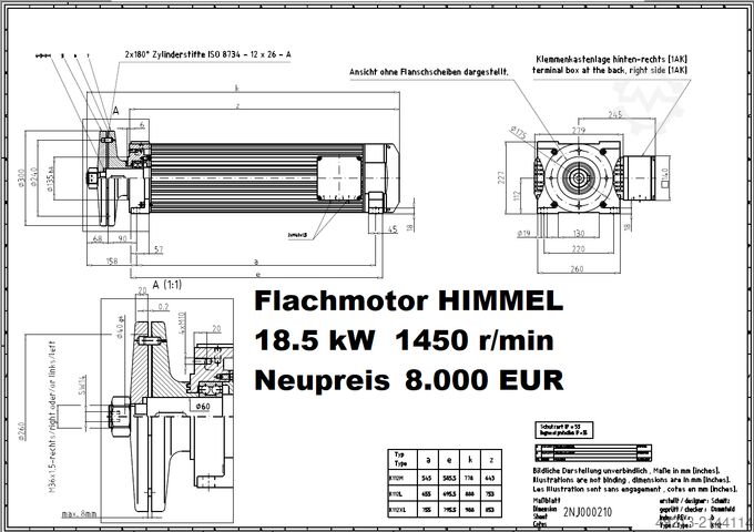 8000 € новый плоский двигатель 18,5 кВт с фланцем