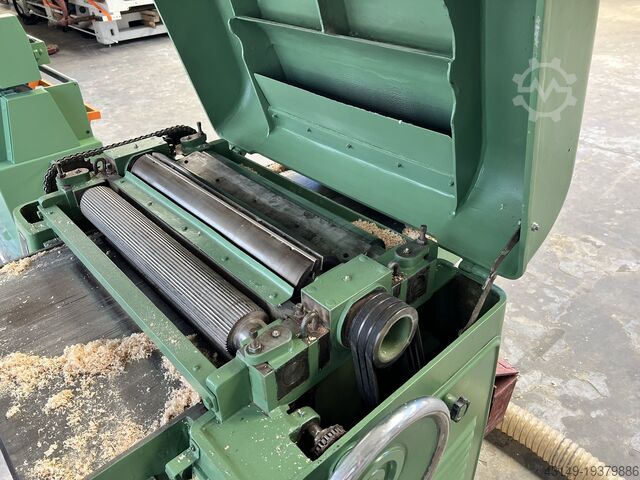 Толщинорейсмус Dornburg, тип DD 63. Массивный рейсмусовый станок (чугун), длина стола ок. 1050 мм. Ширина строгания ок. 630 мм, макс. высота прохода 200 мм. Вал с четырьмя ножами. Мотор 5,5 кВт, скорость 5500 об/мин. Подача 18 м/мин. Габариты ок. 1100 x 1300 x 1600 мм (ДхШхВ). Вес ок. 1100 кг.