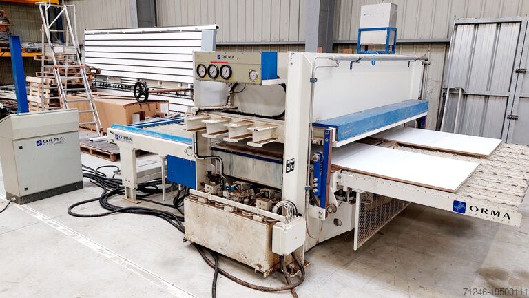 Пресс, предназначенный, в частности, для производства клееных деревянных панелей из массива с использованием специальных клеев.