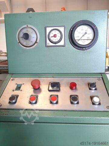 Панель управления с манометром контроля давления - Таймер для открытия плит - Телетермометр для регулирования температуры верхней плиты - Телетермометр для регулирования температуры нижней плиты - Переключатели для открытия и закрытия плит - Аварийная кнопка