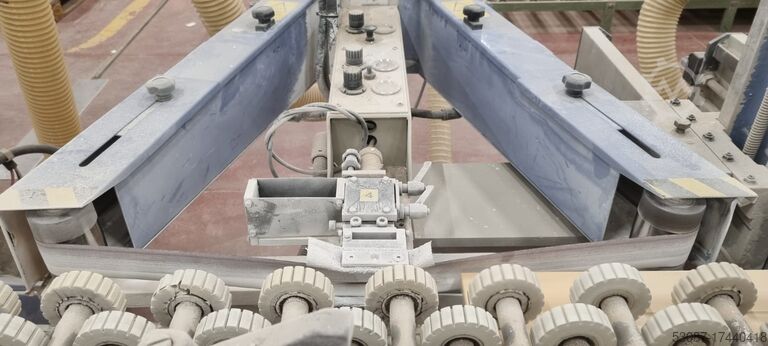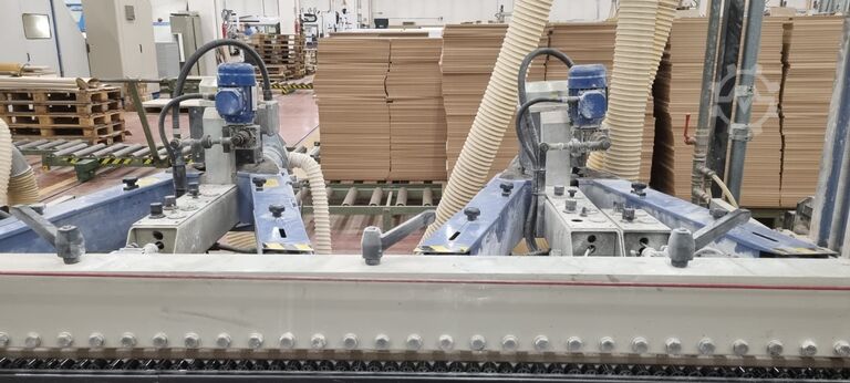 Линия двусторонней шлифовки кромок, состоящая из двух станков с 6 шлифовальными узлами каждый.