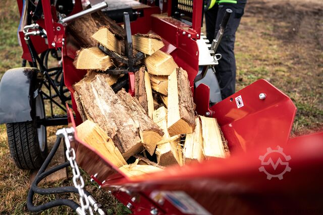 Несмотря на большое усилие раскалывания и большой диаметр, автоматическая машина для колки дров остается относительно компактной. Оснащенный дышлом, он может быть прикреплен к любому прицепу и таким образом легко транспортируется.