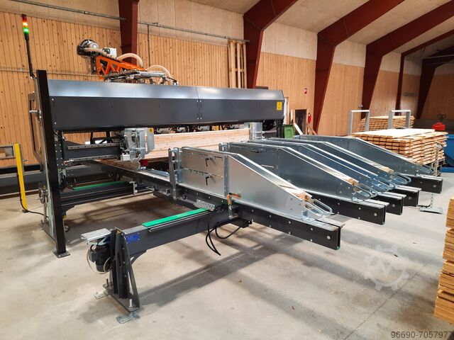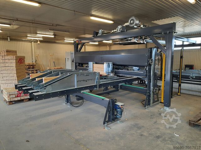 Машина может быть оснащена автоматической подачей досок и укладкой настила/поддона.