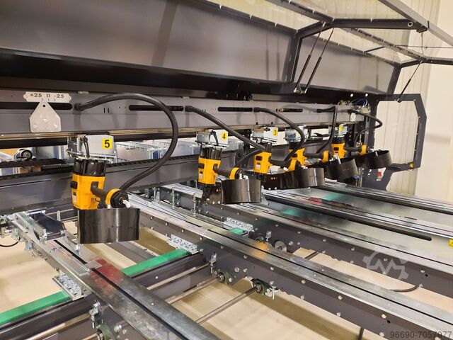DNM3500 — это гибкий, компактный и эффективный пневматический гвоздезабивной станок для производства поддонов с настилом или стрингером (2-сторонние поддоны). Моторизованное преобразование для каналов стрингера. Удобная программа, которая означает, что смена происходит очень быстро, и машина может сохранять настройки для более чем 100 различных настилов и поддонов. Гвоздезабивные пистолеты Bostitch, оснащенные магазинами для гвоздей для рулонов большого размера с индикаторами. Возможности для производства асимметричных поддонов с настилом/стрингером. Оснащены гибкими кассетами для досок. Защитный кожух для шумопоглощения и безопасной работы. Машина управляется с 10-дюймового сенсорного экрана. Система управления Beckhoff.