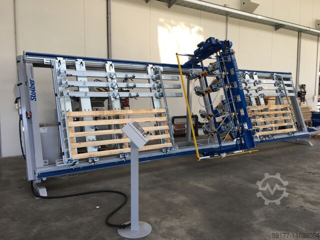 - Гвоздезабивной мост оснащен до 8 гвоздезабивными устройствами с катушечными гвоздями jumbo (около 8000 гвоздей). Благодаря совместному управлению гвоздезабивными устройствами эта машина обеспечивает очень короткое производственное время и, следовательно, высокую пропускную способность.