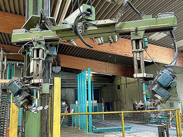 Имеется штабелеукладчик Weimer с необходимой конвейерной техникой. Размеры поддонов мин.-макс. X/Y: 600мм-1600мм/500мм-1500мм, производительность: примерно до 8 поддонов/мин., поворотные захваты: 90°. Имеется документация. Возможна проверка на месте.