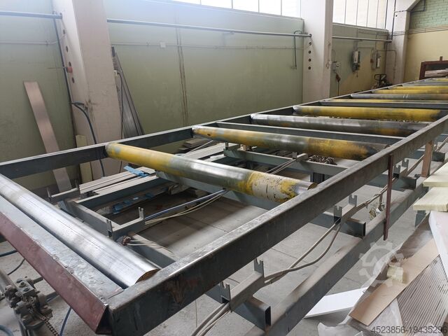 Оборудование использовалось для производства сэндвич-панелей. Оснащено системой водяного циркуляционного нагрева. Панели прессуются гидравлически, также установлены 2 электрических транспортировочных конвейера.