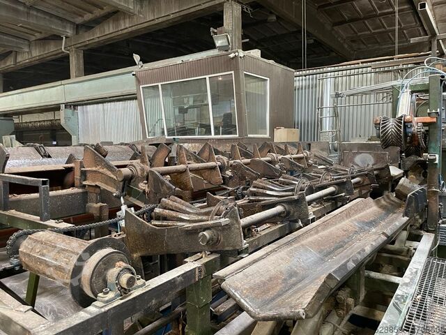 - Транспортер бревен с пневматическими цилиндрами-толкателями с правой стороны