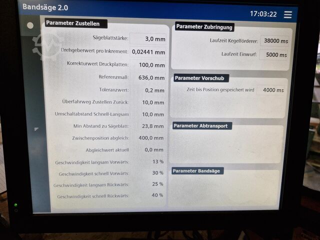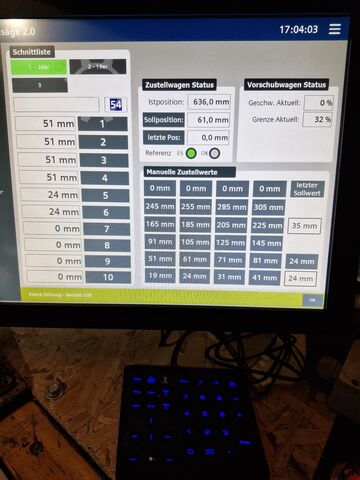 (например, общее расстояние, следующий рез, полная программа резки, размер предыдущего реза, скорость подачи и т.д.)