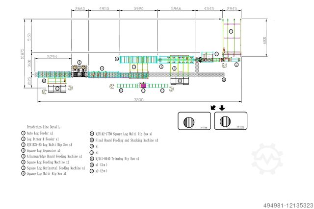 обработка слабой массы - длина пропила от 1300 до 4500 мм - диаметр бревна от 130 до 350 мм - производительность 100 м3/смена Ncsc R Nc Isnwm R Njfneu - общая мощность 230 кВт.