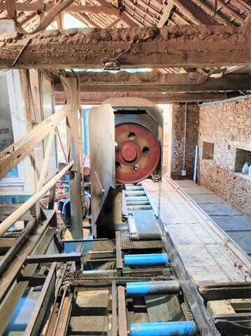 Тележка Jocar - комплект charriot идеально подходит для коротких лесоматериалов, состоит из: входной передачи, полумесяца, тележки или шаррио из трех башен модели 30 P900/SM/NR, установленной на механической конструкции, стола с системой позиционирования mudata все это внутри закрытой кабины, выходного роликового поезда, ленточной пилы Jocar модели 1250/165/NR, с маховиком диаметром 1250мм, bicorte, входная передача 4 цепи длиной 12000мм, каретка 3 башни идеально подходит для короткой древесины 1000мм минимум, так как расстояние от первой до второй 750мм и от второй до третьей 1350мм, максимальная длина 3 метра, техника Jocar, все 2015 года.