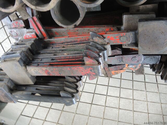 18 шт. верхних эксцентриковых вставных петель с плоскошлифованными шарнирными коробками шириной 110 мм, подходящих для полного шпулярника ESTERER HD 30 или EHD 30, 14 шт. нижних вставных петель шириной 110 мм, 90 шт. верхних трубчатых датчиков 108 мм Ø с подвеской пружинных стержней шириной от 9 мм до 204 мм, 80 шт. нижних трубчатых датчиков 108 мм Ø с опорами шириной от 9 мм до 204 мм, 70 шт. вставок, 20 шт. новых запасных пружинных стержней
