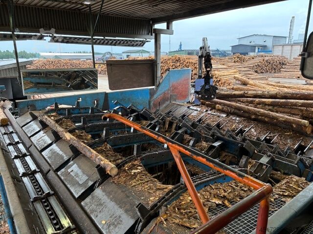 Комплекс сортировки бревен, изготовлен Interlog, 2 x 25 карманов. 1997 года выпуска с новой системой Rema 2025 и операторским креслом 2025 года. Новый ступенчатый питатель Hedlund, 2010 года выпуска.