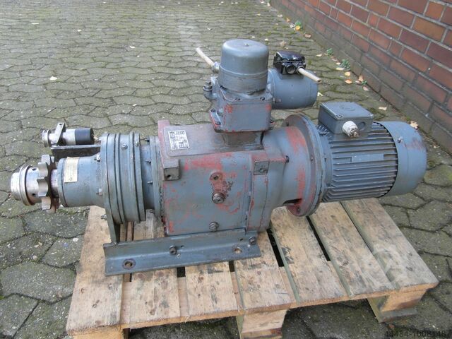 Вариатор с гидравлическим приводом с двигателем 2,2 кВт, 1430 об/мин, с планетарным редуктором для снижения скорости, электрическая регулировка через червячный мотор-редуктор, Ncec R Nslxzhtjc Ifneu
