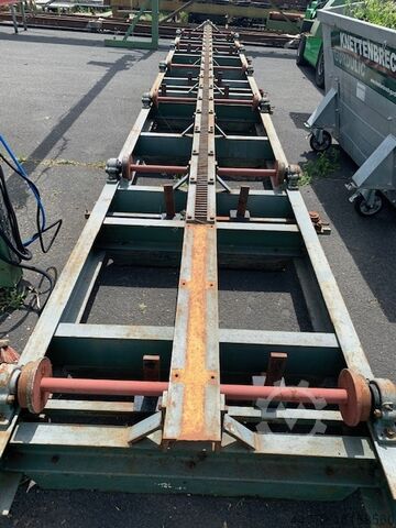 Прочная зажимная каретка для горизонтального ограждения или ленточной пилы Длина ок. 9,0 м. Ширина колеи 920 мм. 6 зажимных блоков. С гидравлической подачей. Ncec Retqd Nae Nc Ifneu Также подходит для подачи в сушильные печи и т.д.