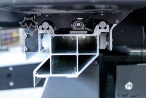 Прочная, но легкая поперечная салазка из стальных профилей с опорным роликом на внешней узкой стороне, поперечная салазка расширяется на широкой стороне Ограничитель длины на поперечной салазке с мм шкалой и телескопическим удлинителем, выдвигающимся до 3500 мм; с 2 прочными и безлюфтовыми