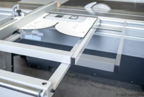 Электромоторный ограничитель ширины с шириной пропила 1250 мм справа от пильного диска, ввод размеров на панели управления сверху с помощью позиционного регулятора с точностью до 0,1 мм, ограничитель можно откинуть для освобождения поверхности стола;