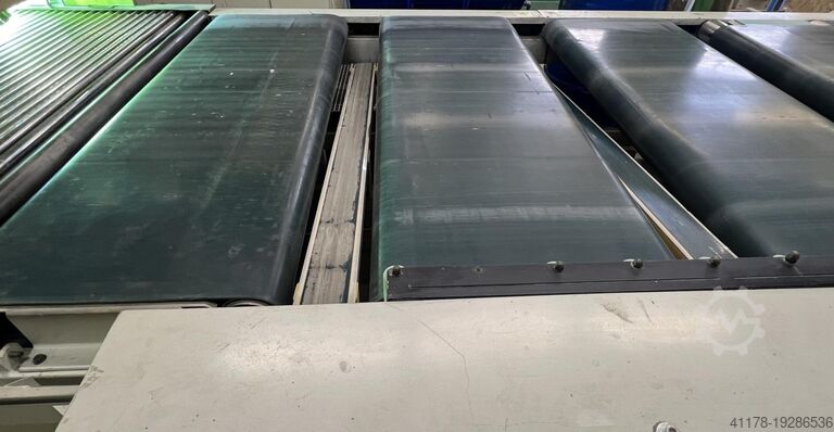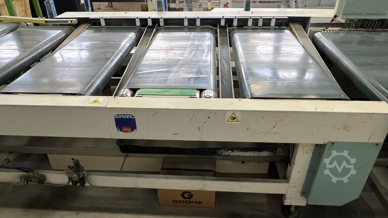 1. детали подаются с помощью поперечных ремней, установленных под углом 90 градусов к направлению подачи