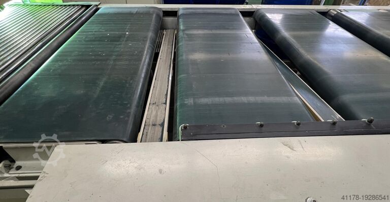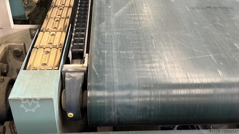 1. детали подаются с помощью поперечных ремней, установленных под углом 90 градусов к направлению подачи