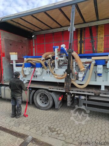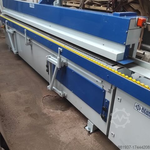 Узколицевая шлифовальная машина с возможностью фрезерования и шлифования кромок. Сначала два шлифовальных узла с осцилляцией и лентами шириной 160 мм, т.е. предварительная шлифовка с последующим выравниванием, затем два узла для фрезерования кромок сверху и снизу, оснащенные фрезами для фрезерования кромок r-6 мм, и далее два узких узла для шлифования лент после фрезерования в конце также с осцилляцией, последний седьмой узел со щеточным диском для выравнивания. Станок подходит для шлифовки деревянных деталей из массива дерева и МДФ, например, столешниц различных видов, полок, элементов лестниц, дверей, окон и других различных элементов мебели и деревянных строительных элементов. Готов к использованию, может быть протестирован и введен в эксплуатацию на месте. Комплектуется несколькими шлифовальными лентами и некоторыми деталями.