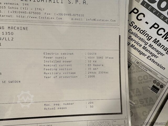Размер шлифовальной ленты 1380x2620 мм
