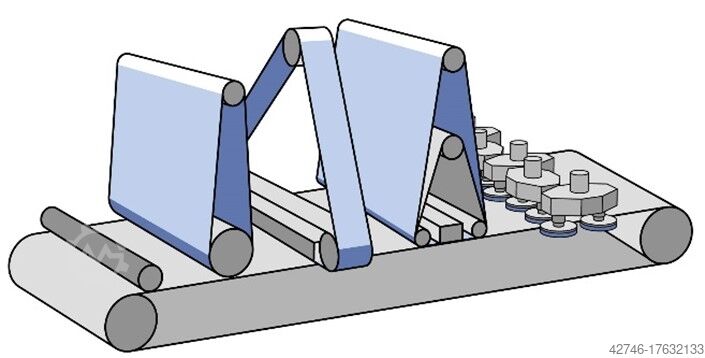 С непрерывным транспортным ковром, скорость подачи 3 - 15 м/мин. с частотным регулированием, толщина заготовки (3 - 200 мм) регулируется двигателем