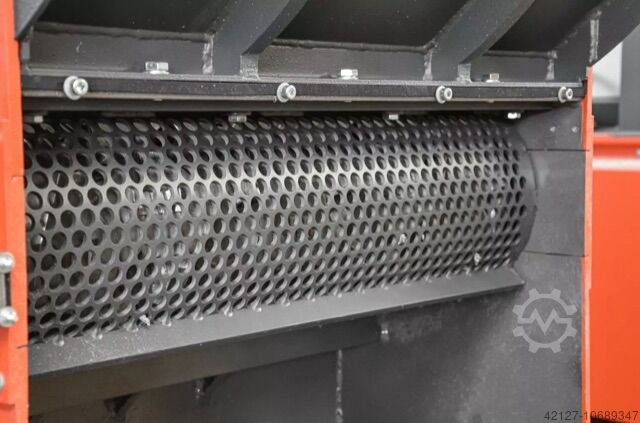 Бункер выполняет несколько задач. Во-первых, в него подается измельчаемый материал - вручную, механически или с помощью конвейерной ленты. Широкое отверстие позволяет легко заполнять даже очень крупные детали. Однако для измельчения решающее значение имеет его особая конструкция, закругленная спереди и эффективно предотвращающая образование мостов материала. Даже при работе с крупногабаритными деталями измельчитель режет свободно. При необходимости можно приобрести как удлинители бункера, так и крышки с газовыми прижимными пружинами.