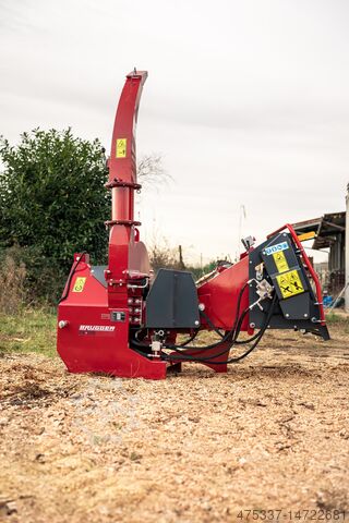Измельчитель древесины Brugger PX170 работает от вала отбора мощности трактора и способен измельчать бревна диаметром до 17 см.