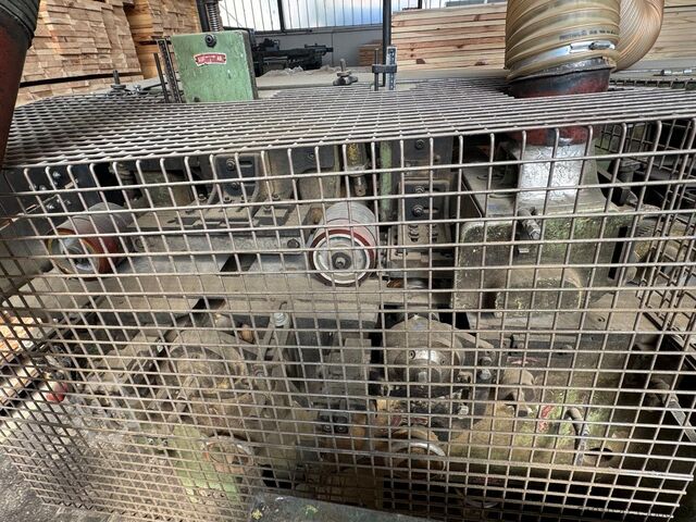 Продаётся бывший в употреблении четырёхсторонний строгальный автомат Weinig с 7 шпинделями и конвейерным рольгангом для подачи.
