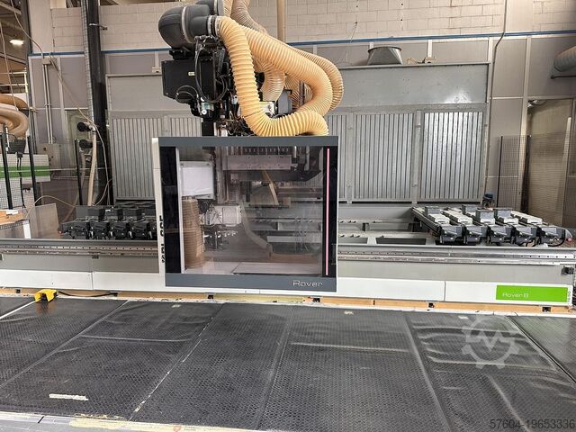 Числовое программное управление с помощью программного обеспечения bSolid. Многодокументное программное приложение в среде Windows позволяет проектирование готового продукта, определение его процессов, определение плана работ, моделирование процессов обработки детали на 3D-модели станка и генерация необходимых станочных программ. bSolid — 3-осевая обработка bSolid — модуль 5-осевой обработки для обработки поверхности с 5-координатными блоками и интерполяционными движениями Все 5 доступных осей (X, Y, Z, C, B). Модуль включает в себя следующие команды: · назначение поверхностям трехмерные черновые и чистовые операции · распространение или проектирование траектории на криволинейную поверхность обработка, лежащая на плоскости · следование 2D или 3D кривым с помощью любого типа инструмента bSolid - 3D-гравировка bSolid — импорт внешних форматов Области работы: X = 5055 мм; Y = 1650 мм (может варьироваться в зависимости от конфигурации) Z = 200 мм с модулями H=74 мм Z = 245 мм с модулями H=29 мм Загружаемая деталь по оси Y: * 1650 мм, толщиной до 60 мм на модулях H=74 мм * 1600 мм, при толщине более 60 мм на модулях H=74 мм. 10 этажей АТС – 40 тележек В состав кода входит: • 2 алюминиевые планки (1 левая и 1 правая), по которым скользят боковые упоры. • 10 алюминиевых столешниц. Столешницы скользят по закаленным и шлифованным линейным направляющим. Направляющие с шарикоподшипниками. Блокировка осуществляется на обеих линейных направляющих, спереди и сзади, с помощью Четыре пневматических цилиндра. Управление осуществляется кнопкой, расположенной перед рабочей поверхностью. Каретки скользят по стальным направляющим, расположенным над профилем. Пневматическая система блокировки, разделенная на 2 зоны блокировки по оси X Автоматическое позиционирование (EPS) для столешниц. Устройство "EPS" (электронная система позиционирования) для автоматическое позиционирование рабочих поверхностей и тележек с помощью ЧПУ, оснащенных запирающими устройствами, способными исключить возможные ошибки оператора. Задний упор, ход 140 мм Упор промежуточного ряда, расположенный на высоте 405 мм, с ходом 140 мм. Упор переднего ряда, установленный на высоте 1460 мм, с ходом 140 мм 4 боковых упора с ходом 140 мм (2 правых + 2 левых) с системой 2 дополнительных боковых упора с ходом 140 мм (1 правый + 1 левый). Датчик проверки опускания упоров 12 зажимных устройств для зажима узких заготовок 6 подъемников для погрузочных штанг, для модулей H=74 мм Конфигурация 5A для Rover B. Конфигурация для высокой производительности и гибкости благодаря двум рабочим группам 4 и 5 осей и возможность одновременной смены инструмента. Включает оси и каретки для Перемещение основных рабочих групп. Включает 2 инвертора. Вторая ось Y. Вводит разделение передней и задней кареток Y с независимой моторизацией. Две Y-каретки развивают максимальную скорость 118 м/мин. Электрошпиндель 13,2 кВт (17,7 л.с.), крепление HSK F63, воздушное охлаждение. Основные характеристики: • 11 кВт (14,7 л.с.) от 12 000 до 15 000 об/мин в режиме S1. • 13,2 кВт (17,7 л.с.) от 12 000 до 15 000 об/мин в режиме S6. • Подшипники керамика. • Правое и левое вращение. • Скорость вращения от 1000 до 24 000 об/мин, программируемая ЧПУ. • Выпуск Пневматическое управление осуществляется посредством призматической линейной направляющей и шарикоподшипников с циркулирующими шариками. В комплект входит защитный кожух. Извлечение стружки с 6 ра