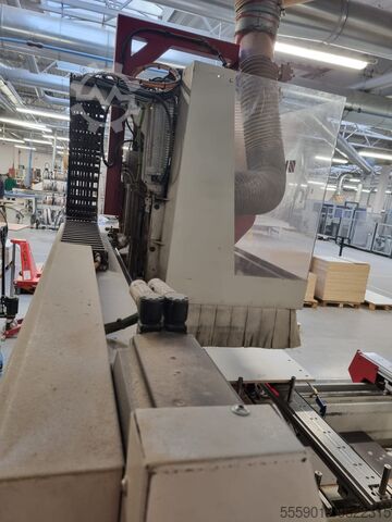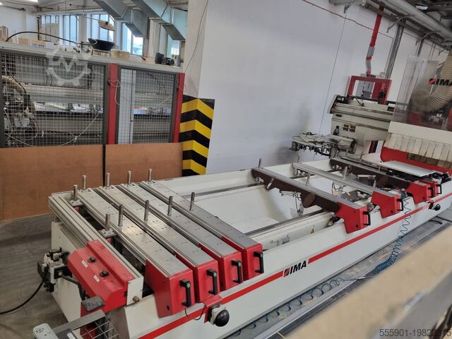 - Функции IMAWOP (выборочно): выбор операций (сверление, фрезерование, пазы); обновление графики после корректировок; оптимизация времени сверления; графическое позиционирование присосок; условное и формульное программирование; технологические и инструментальные базы данных; алфавитно-цифровые имена/описания (до 28 символов); подпрограммы; ручной ввод порядка обработки; сообщения о сбоях; регулировка ускорений/торможений (точность до 0,001 мм); автоматическая установка нуля; коррекция с переносного пульта