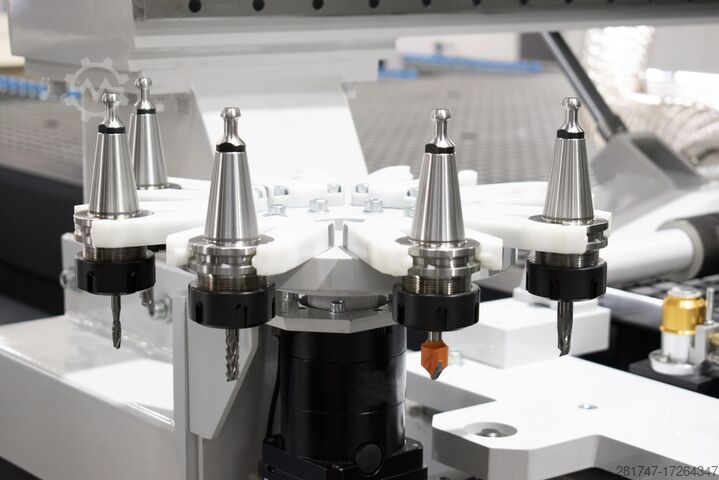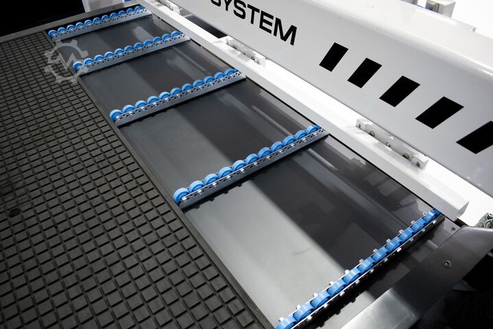 Фрезерный станок 2030 ATC SEMI AUTO оснащен растровым вакуумным столом с пневматическими секциями, что сокращает время зажима материала. Позиционирующие основания обеспечивают точное позиционирование материала на рабочем поле. Чистящая планка с модулем пылеудаления подготавливает поверхность рабочего стола для укладки материала перед следующим резом.
