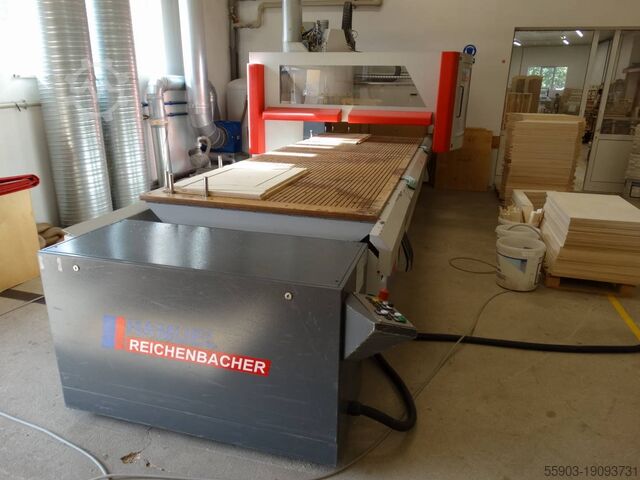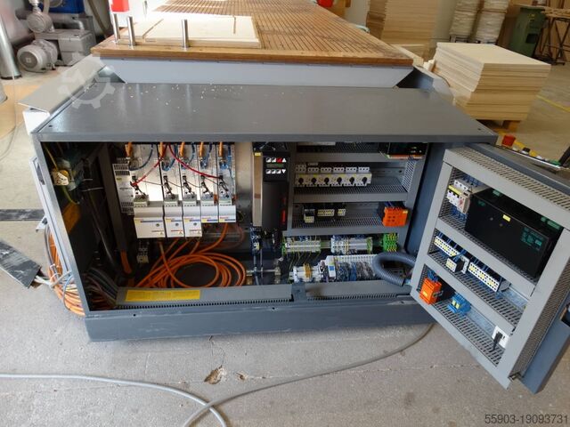 Стол станка: деревянный (высококачественная водостойкая фанера). Размеры: 4000 x 1300 мм. 2 x 4 пневматически выдвижных базовых штифта (диаметр 25 мм, ход 115 мм).