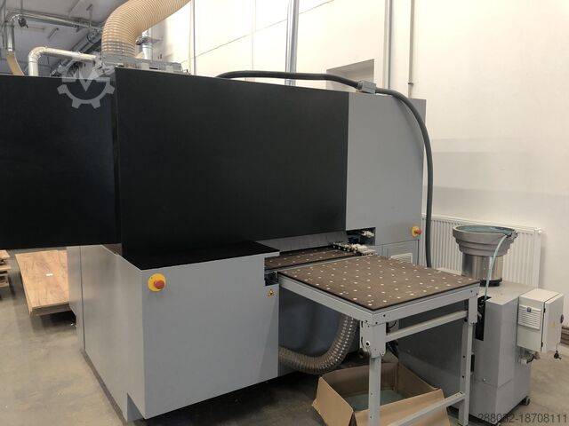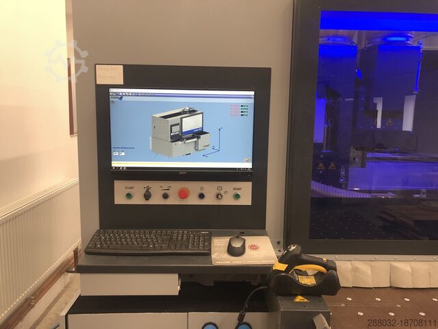 Непрерывный обрабатывающий центр с ЧПУ, приводом зажима в направлении X и фиксированной портальной конструкцией в направлении Y