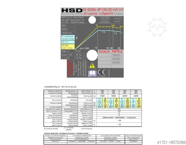 - Фрезерный шпиндель с воздушным охлаждением HSD / Италия 9,6 кВт HSK 63 (опция 11 кВт HSK 63F)