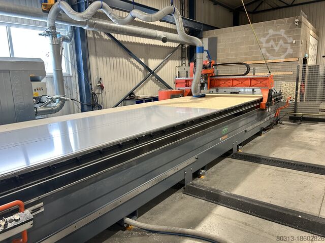 Вертикальный обрабатывающий центр с ЧПУ с 3 управляемыми осями и исключительной производительностью обработки по оси Y. Он оснащен системой зажима вакуумного стола, которая удерживает панели и листы с помощью вакуума. Это решение особенно эффективно при обработке тонких деталей, которые трудно закрепить с помощью обычных зажимных систем.