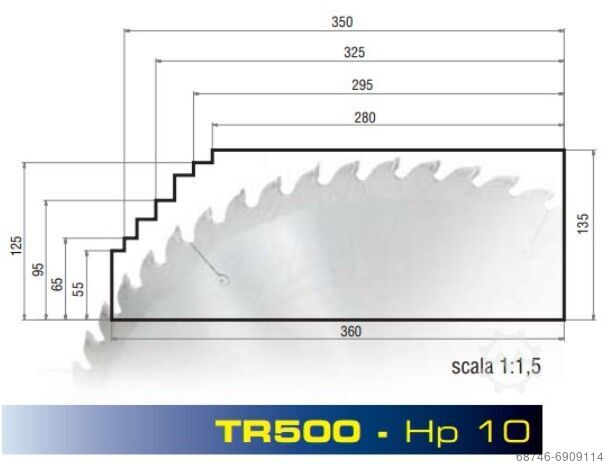 Режущая способность: 55 x 360, 80 x 340, 95 x 325, 125 x 295, 135 x 280 мм