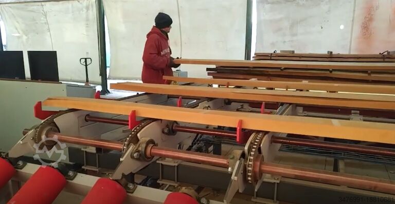 Оптимизирующая дисковая пила с сортировочным столом с 18 толкателями - MOST doo Словения Nec R Ncev Tb H He Ifnscu с сервоприводом 7,5 кВт, автоматической регулировкой толщины, с подающим конвейером с 4 сепараторами