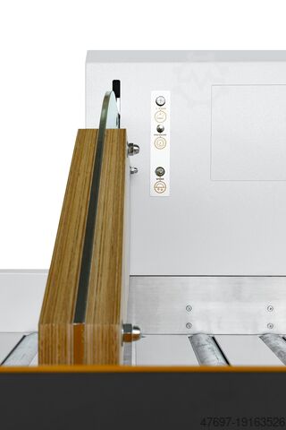 Верхний зажимной элемент с электропневматическим управлением. Регулировка скорости и внешнего давления на панели управления. Интеллектуальное давление: автоматически подстраивается под толщину древесины, что значительно сокращает время резки