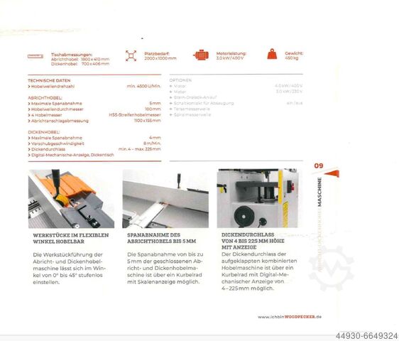 -Стандартная регулировка стола толщины с цифровым дисплеем