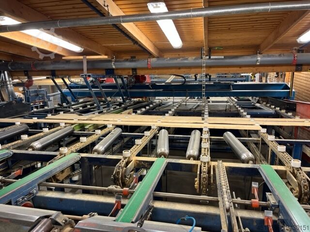 Строгальная линия Waco 3000 с двойной ленточной пилой Stenner. Линия в очень хорошем состоянии, скорость составляет 80–120 м/мин.